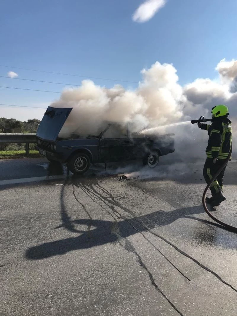 Edinilen bilgiye göre, Aydın- İzmir otobanı Germencik gişelere bir kilometre kala bir otomobilden dumanlar yükseldi. Yangın ihbarı üzerine bölgeye Aydın Büyükşehir belediyesi itfaiye ekipleri sevk edildi. İtfaiye ekipleri otomobildeki yangını söndürürken, otomobil küle döndü.