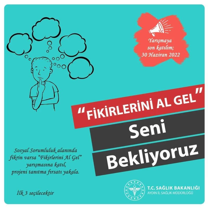 Yarışma ile ilgili Aydın İl Sağlık Müdürlüğü’nden yapılan açıklamada “Sevgili sağlık çalışanları, sağlık okuryazarlığının artırılması ve sağlıklı yaşam kültürünün oluşturulması amacıyla Aile Hekimliği, Kanser ve Kanser Taramaları, Sağlıklı Beslenme ve Hareketli Hayat, Bulaşıcı Hastalıklar, El Hijyeni. Bağımlılık (uyuşturucu, tütün, alkol ve teknoloji vb.), Çevre Sağlığı, Ağız ve Diş Sağlığı ile Anne ve Çocuk Sağlığı konularını içeren Sosyal Sorumluluk Alanında fikirleriniz varsa "Fikirlerini Al Gel" yarışmasına katılımlarınızı bekliyoruz. Başvuruların 30 Haziran 2022 tarihine kadar aydin.saglikliyasam@saglik.gov.tr adresine mail olarak bildirilmesi gerekmektedir. Yarışma da dereceye giren ilk 3 kişi 3-9 Eylül Halk Sağlığı Haftası açıklanacaktır” ifadelerine yer verildi.
