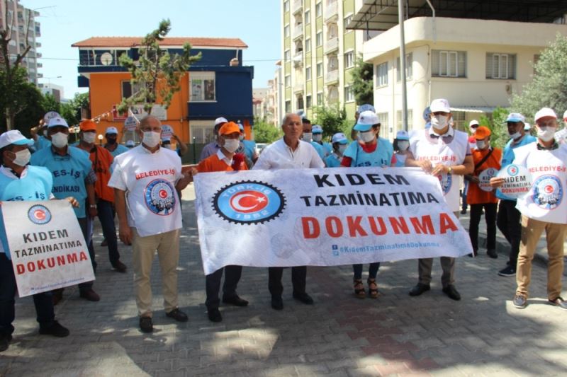 Türk-İş Aydın İl Temsilcisi ve Tes-İŞ Sendikası Aydın Şube Başkanı Mustafa Aydın “Tamamlayıcı Emeklilik Sistemi” adıyla kıdem tazminatı konusunda yapılmak istenen düzenlemelere karşı çıktıklarını belirterek çeşitli sendikaların temsilcilerinin de katıldığı program ile basın açıklaması yaptı. Kıdem tazminatının mevcut haliyle kalmasını isteyen Mustafa Aydın, “Kıdem tazminatı işçilerin en önemli güvencesidir. İşçinin yıllardır döktüğü terin ve verdiği bir ömrün karşılığıdır. Kıdem tazminatının mevcut haliyle korunmasını istiyoruz” dedi.