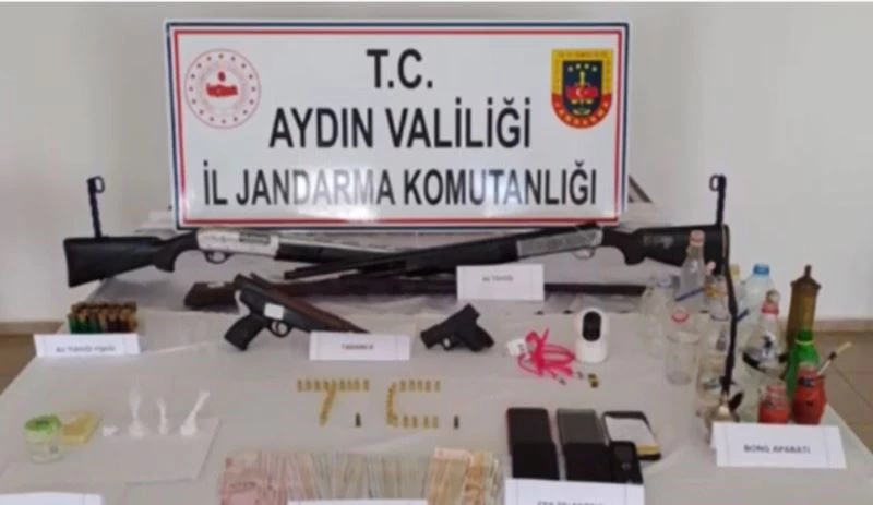 Edinilen bilgiye göre, suç işlemek amacıyla örgüt kurarak uyuşturucu madde ticareti yapan 14 şüpheli teknik ve fiziki takibe alındı. Yaklaşık 3 ay süren takip sonucunda Aydın İl Jandarma ekipleri operasyon için düğmeye bastı. Şüphelilerin adreslerine düzenlenen eş zamanlı operasyonda; 2 kilo 210 gram metamfetamin/kristal, 29,29 gram kokain, 242 gram esrar, 23 adet uyuşturucu içiminde kullanılan aparat, 4 adet ruhsatsız tabanca, 4 adet şarjör, 4 adet ruhsatsız av tüfeği, 34 adet 7,65 mm. çapında fişek, 14 adet av tüfeği fişeği, uyuşturucu ticaretinden elde edildiği değerlendirilen 17 bin 500 TL ele geçirildi. 11 şüpheli şahıs gözaltına alındı. 3 şüpheli şahsın yakalama çalışmalarının devam ettiği öğrenilirken, uyuşturucu madde kullandığı tespit edilen 27 şahsa da soruşturma çerçevesinde adli işlem yapıldı.