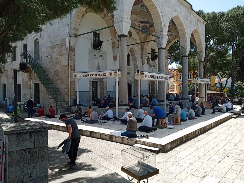 Aydın’da 18 günlük kısıtlamanın ilk gününde sosyal mesafe kurallarına uyularak Cuma Namazı kılındı.