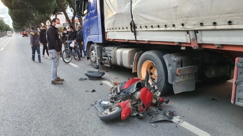 Aydın’ın Nazilli ilçesinde meydana gelen trafik kazasında iki tır ile beton mikserinin arasında kalan motosiklet sürücüsü yaralandı.