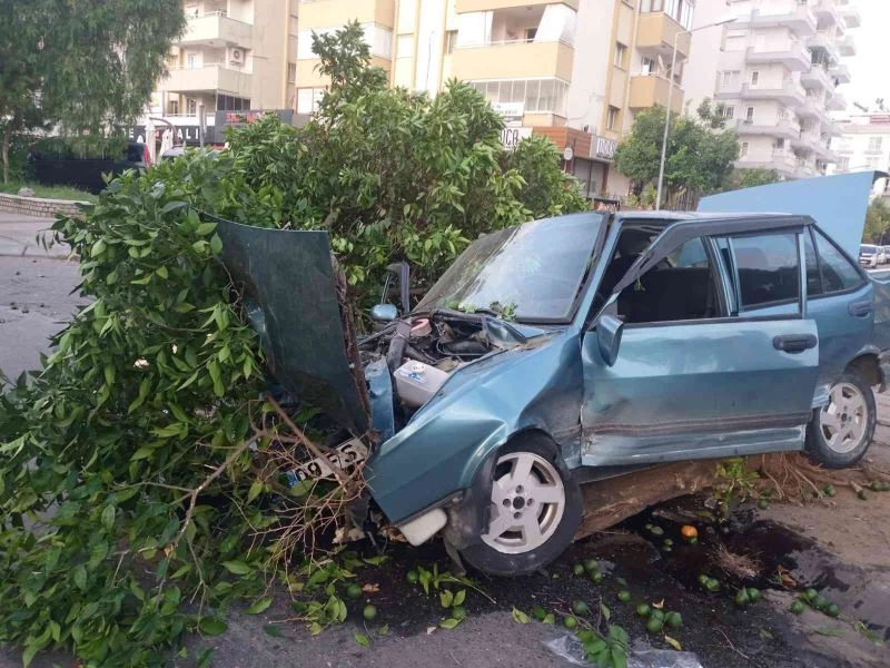 Aydın’ın Efeler ilçesinde direksiyon hakimiyetini kaybeden otomobil sürücüsü önce refüje, sonra kaldırımda bulunan ağacı çarptı, kazada 2 kişi yaralandı.