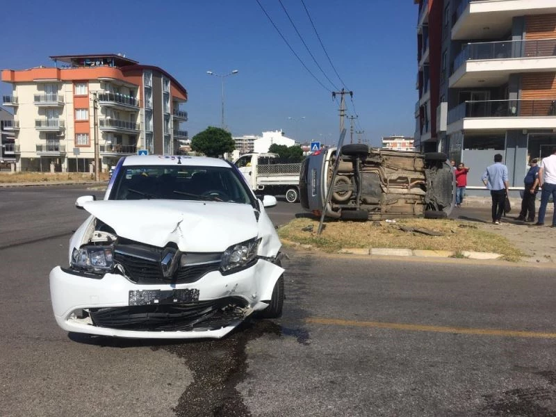 Olay, Fatih Mahallesi Batı Aydın Bulvarı’ndaki kavşakta saat 09.30 sıralarında meydana geldi. Edinilen bilgiye göre Mehmet S. idaresindeki 34 PM 0095 plakalı otomobil ile Mahsun O. idaresindeki 48 JT 225 plakalı ticari araç kavşakta çarpıştı. Çarpışmanın etkisiyle kontrolden çıkan araç refüje çarparak devrildi. Kazayı gören çevre sakinlerinin ihbarı üzerine olay yerine 112 Acil Sağlık ve polis ekipleri sevk edildi. Yaşanan kaza sonrasında araçlar da maddi hasar meydana gelirken, otomobil sürücüleri ise hafif şekilde yaralandı. Yaralılar sağlık ekiplerince ilk müdahalelerinin yapılmasının ardından ambulansla hastaneye kaldırıldı.