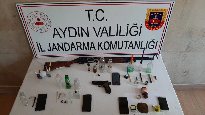 Aydın’da uyuşturucu ile mücadele kapsamında çalışmalar aralıksız devam ederken, Aydın İl Jandarma Komutanlığı ekiplerince Germencik ve Kuşadası’nda istihbarat takibine alınan 11 şüphelinin ikametlerinde arama gerçekleştirildi. Arama kararı ile birlikte ikametlerde yapılan aramalarda 29,12 gram uyuşturucu madde, 15 gram kubar esrar, 0,47 gram bonzai, 23 adet uyuşturucu kullanma aparatı, 2 adet tabanca, 1 adet ruhsatsız av tüfeği, 1 adet kuru sıkı tabanca ele geçirilirken gözaltına alınan 11 şüpheliden 6’sı tutuklanarak cezaevine gönderildi.