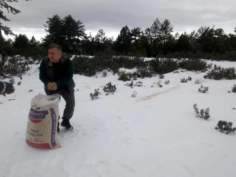Aydın Doğa Koruma ve Milli Parklar Şube Müdürlüğü tarafından kış şartlarında yem bulmakta zorlanan yaban hayvanları için yemleme çalışması yapıldı.