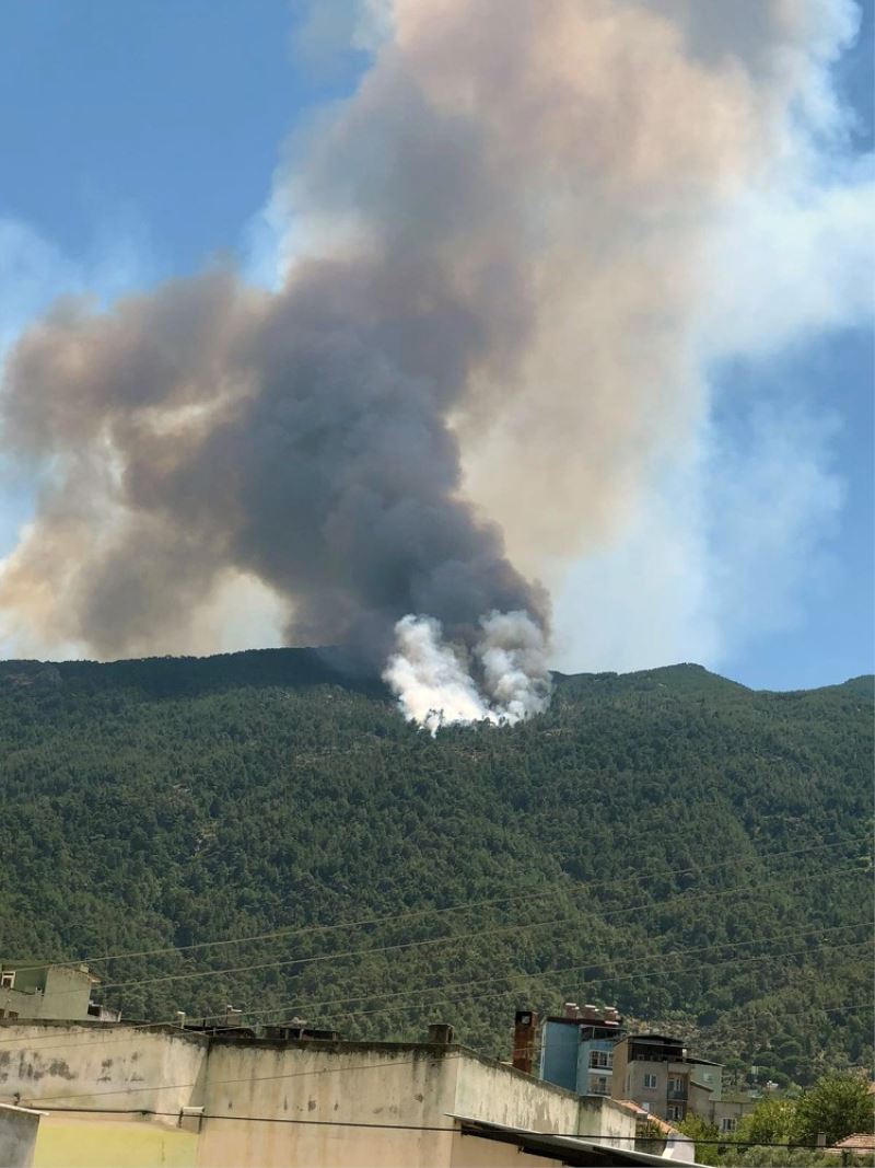 Çine ilçesi Akçaova Mahallesi Gökbel Dağı eteklerinde saat 13.15 sıralarında ormanlık alanda yangın çıktı. Yangına havadan 5 helikopter, karadan ise 12 arazöz, 5 su tankeri ve 2 dozer müdahale ediyor. Bölgeye DSİ Aydın Bölge Müdürlüğü tarafından dozer takviyesi yapılırken, alevlerin yanan sahanın hemen alt kısmında bulunan Akçaova Mahallesi yerleşim alanına sıçramaması için ekipler yoğun çaba harcıyor.