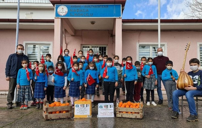 Aydın’ın Sultanhisar ilçesindeki Kavaklı-Kabaca İlkokulu öğrencileri okul bahçesinden kendi elleriyle topladıkları portakalları, 18 Mart Çanakkale Zaferini anmak maksadıyla, Çanakkale’nin Gelibolu ilçesinde bulunan Yeniköy İlkokulu’ndaki öğrencilere gönderdi. Efe Torunlarının gönül köprüsü kurduğu kendileri gibi şehit torunu olan arkadaşları da gelen hediye ve mektuplara kayıtsız kalmayarak çektikleri videolarla teşekkür mesajları gönderirken, miniklerin bu davranışı yürekleri ısıttı.