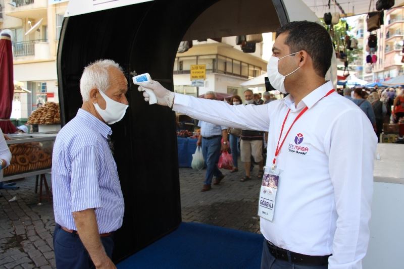 İçişleri Bakanlığı’nın koronavirüs tedbirleri kapsamında 3 aydır kurulmayan tarihi Salı Pazarı’ndaki yasak kaldırıldı. Hasan Efendi ve Ramazan Paşa Mahallesi’nde 2 asırlık geçmişi olan pazarda esnaf yeniden tezgah açmanın mutluluğunu yaşadı. Esnaflar, Aydın Valisi Hüseyin Aksoy, Efeler Kaymakamı Cemal Şahin ve Efeler Belediye Başkanı Fatih Atay’a teşekkür etti. Efeler Belediyesi tarafından görevlendirilen personeller tarafından ateş ölçümü yapılarak ve pazar girişine kurulan dezenfeksiyon tünelinden geçerek içeriye alınan vatandaşlar, pazarın yeniden kurulmasından dolayı duydukları memnuniyeti dile getirdiler.