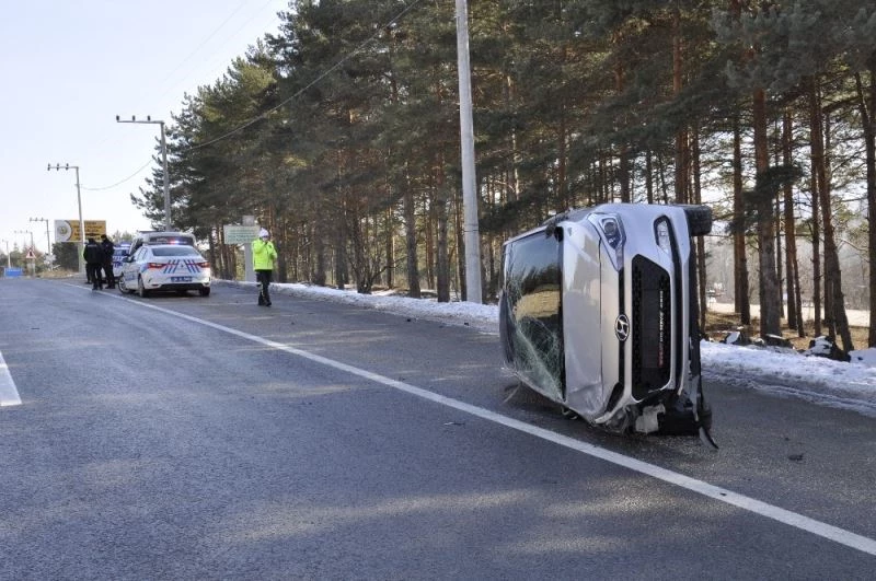 Aydınlatma direğine çarpıp takla atarak karşı şeride geçti