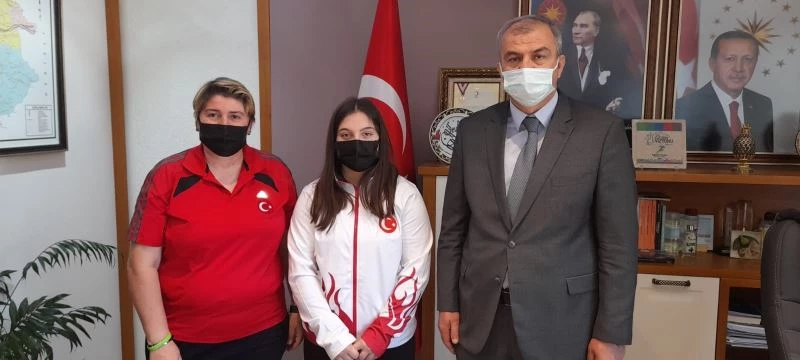 Efeler Mustafa Kiriş Ortaokulu 8. sınıf öğrencisi olan Burcu İldem Gerçekden Dünya Gençler Halter Şampiyonası’nda U-15’te olmasına rağmen U-20 kategorisinde yarıştı. Bu kategoride yarışan en küçük öğrenci olarak koparmada 87, silkmede 103 kilo kaldıran Gerçekden, kendi kategorisi olan U-15’te ise 76 kilo sıkletinde Avrupa ve Türkiye rekoru kırdı. Şampiyona dönüşü başarılı sporcu Burcu İldem Gerçekden’i makamında misafir ederek ödüllendiren Aydın İl Milli Eğitim Müdürü Seyfullah Okumuş, “Burcu’nun bu azim ve kararlılıkla devam ederse çok yakında altın madalyaları şehrimize getirmeye başlayacağına inanıyorum. Antrenörü Meliha Sarıkoca’ya, çalışmalarına devam ettiği Efeler Abdülhamid Han Mesleki ve Teknik Anadolu Lisesi yöneticilerine, kamp sürecinde ve ulaşım giderlerinde yardımcı olan iş insanı hayırsever Mustafa Takmaklı’ya çok teşekkür ederim” dedi.