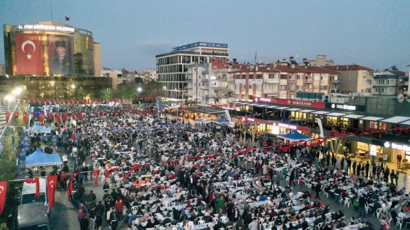 Efeler Atatürk Kent Meydanı’nda gerçekleştirilen iftar yemeğine, 10 bin kişi katıldı. Büyükşehir Belediyesi’nin yemekhanesinde pişen yemeklerle donatılan binlerce kişilik bereketli sofralar, meydanı tamamen kapladı. Aydın Büyükşehir Belediye Başkanı Özlem Çerçioğlu, düzenlenen iftar programına katılarak vatandaşlarla bir araya geldi. Çerçioğlu’na, Millet İttifakı il başkanları da eşlik etti.
