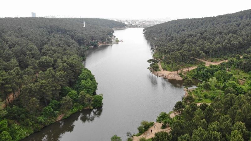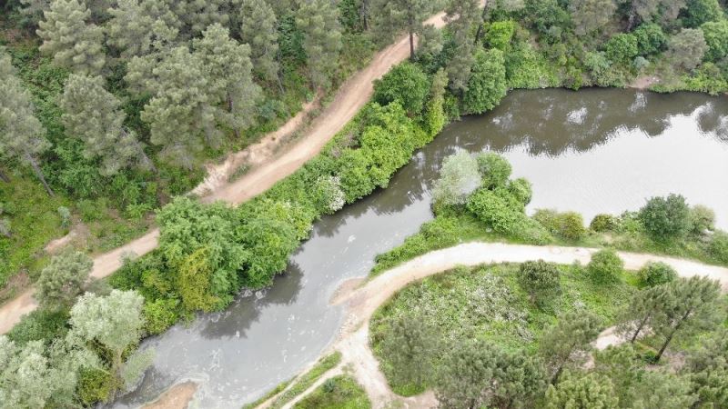 Öte yandan Aydos Ormanı’nda atıklardan kirletilen göl drone ile havadan görüntülendi.