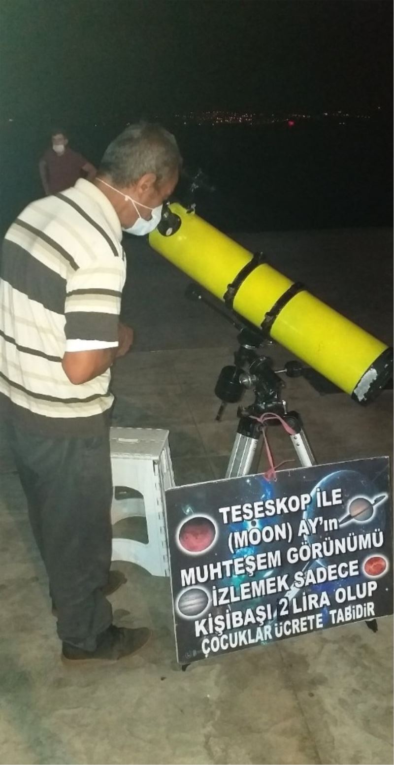 Sinop’ta yaşayan emekli Hasan Aker (55), geçmişten beri tutkuyla gözlemlediği gökyüzünü insanların da görmesini istedi ve teleskobunu alarak sokağa çıktı. Sinop Aşıklar sahiline kurduğu teleskop sistemi ile gelenlere gökyüzüne dair seyir zevki sunuyor.