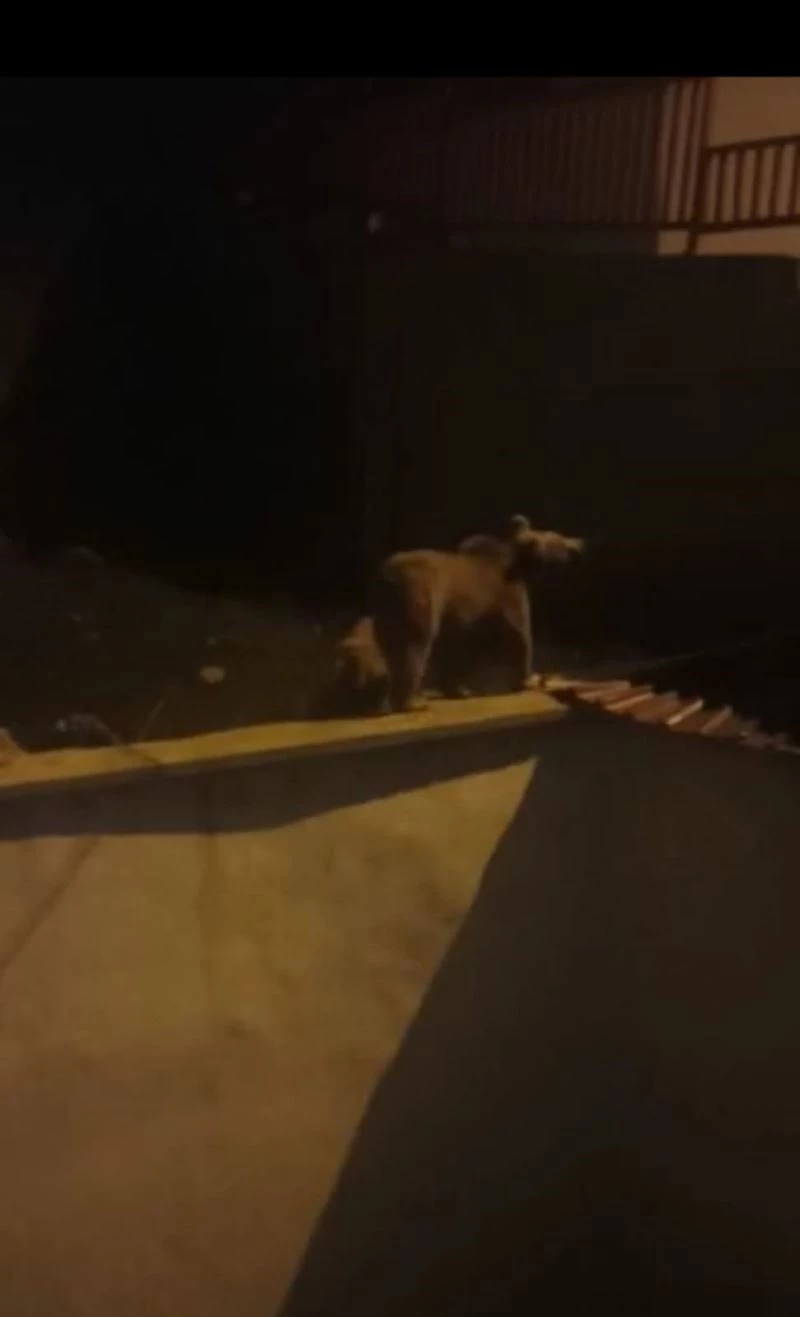 Kış uykusundan uyanan ayı ve yavrusu gece saat 00.30 sularında yiyecek bulmak için ilçenin Emir Şaban Mahallesi’nde bulunan Çukurca Devlet Hastanesi çevresinde gezinirken görüntülendiler. Ayı ve yavrusunu görenler şaşkınlıklarını gizleyemezken, anne ve yavrusu bir süre sonra gözlerden kaydoldu.