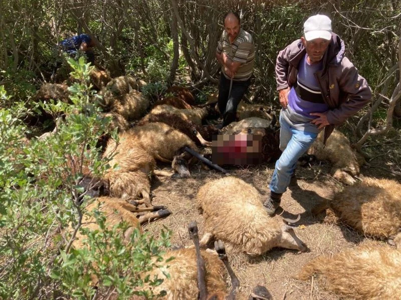 Ayılardan ürküp kaçan sürüdeki 31 koyun ağaçlıklı dere yatağında sıkışarak telef oldu