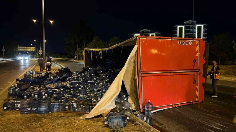 Aydın’ın Söke ilçesinde bulunan tartışmalı kavşakta bir gün arayla gelen ikinci kazada bu kez kamyon devrildi.