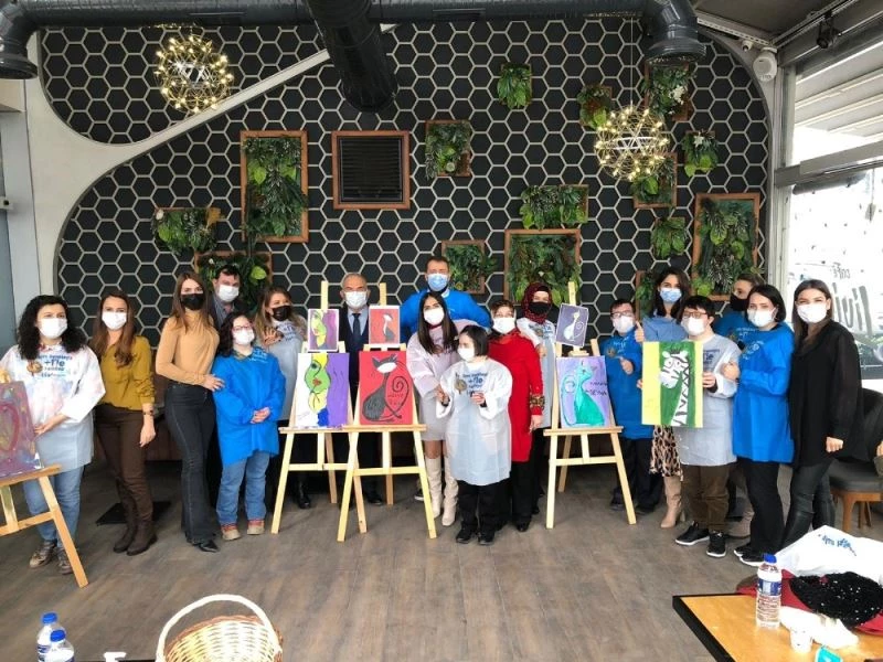 Sağlık çalışanları Down Sendromlular Günü’nde “Aynı renkteyiz +1 ile farklıyız” temalı resim etkinliği düzenledi.
