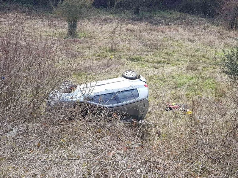 Alınan bilgiye göre, karayolunun Çınarcık ilçesi Esenköy beldesi Engere mevkiinde traktörü sollamak için şerit değiştiren Burhan Ş. yönetimindeki 34 UP 0506 plakalı otomobil yoldan çıkarak takla attı. Kazada emniyet kemeri takılı olan sürücü ve yolcu kazayı burnu bile kanamadan atlattı.