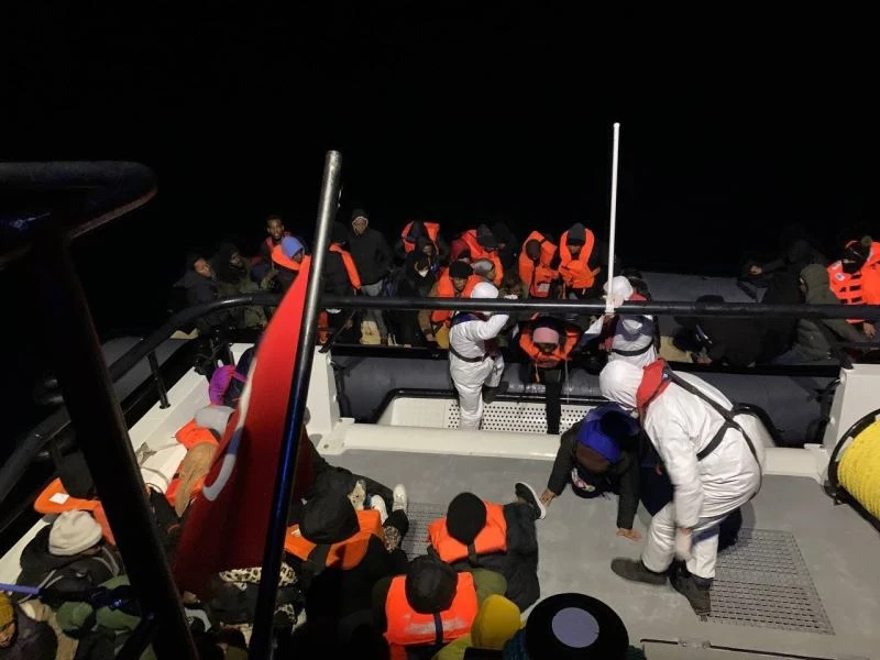 Çanakkale’nin Ayvacık ilçesi açıklarında Sahil Güvenlik Komutanlığı ekipleri tarafından, hareket halindeki lastik bot içinde 50 kaçak göçmen yakalandı.