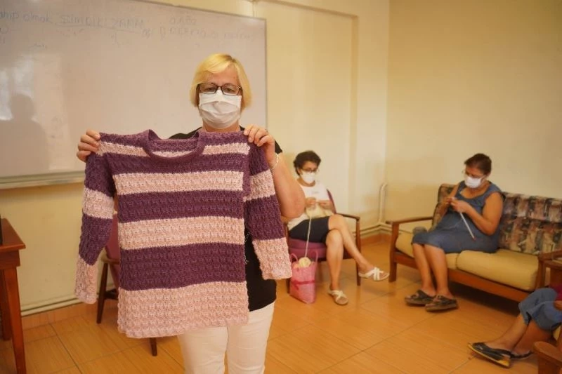Aile ekonomisine katkı sağladıklarını ifade eden Hayriye Arıcı, “Belediye’nin açtığı örgü kursuna müracaat ettim. 3 aydır geliyorum. Kazak ve hırkalar örülüyor. Panço örülüyor. Gelir sağlıyoruz” dedi.