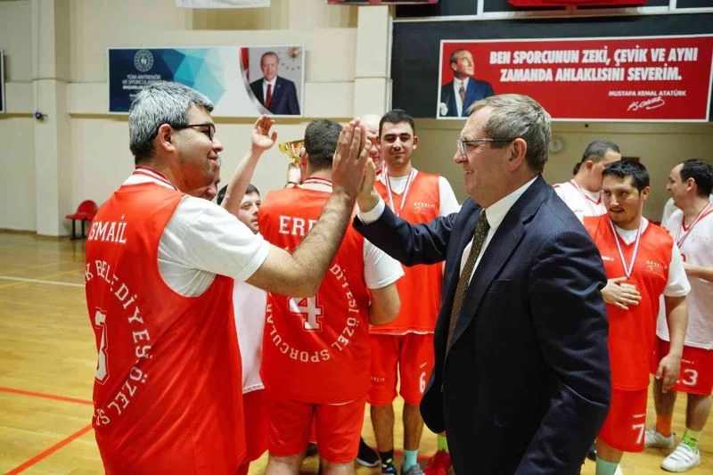 Ayvalık Belediye Başkanı Mesut Ergin, Ayvalık Belediyesi Özel Çocuklar Eğitimevi’nde öğrenim gören down sendromlu çocukları basketbol antrenmanlarında ziyaret etti. Başkan Ergin, çocuklarla uzun süre sohbet edip ardından basketbol maçlarının hava atışını yaptı. Özel çocukların basketbol müsabakasını tribünden takip eden Başkan Ergin, maç sonunda özel çocuklara kupa ve madalyalarını verdi. Başkan Ergin’e sevgi gösterisinde bulunan çocukların mutlulukları gözlerinden okundu.