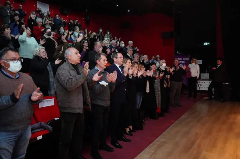 Ayvalık Belediye Başkanı Mesut Ergin’in eşi Canan Ergin ile birlikte katıldığı gecede, çok sayıda sanatsever salonu doldurdu.