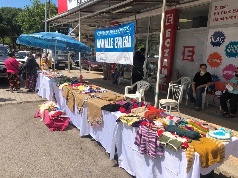 Kadınların sosyal yaşamın yanı sıra üretim sürecinde de daha fazla yer almalarını amaçlayan Ayvalık Belediyesi, bir yandan bünyesindeki mahalle evlerindeki kadınlara kurs vererek, bir yandan da burada üretilen el işi ürünlerin satışına destek olarak aile bütçelerine katkıda bulunuyor. Ürettikleri el emeği ürünleri satarak aile ekonomisine katkıda bulunan kadınlar da, emeklerini kazanca dönüştürmenin sevincini yaşıyor.