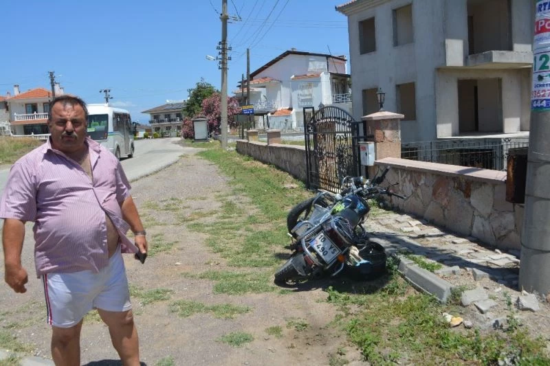 Alınan bilgiye göre; Ayvalık’ın Cunda Adası Mithatpaşa Mahallesi Mevlana Caddesi Adakent Sitesi durağı önündeki virajda, A.K.A. (80) yönetimindeki 34 K 0038 plakalı özel otomobil ile Mehmet Yaşar Salman (71) idaresindeki 10 YS 490 plakalı motosiklet çarpıştı.