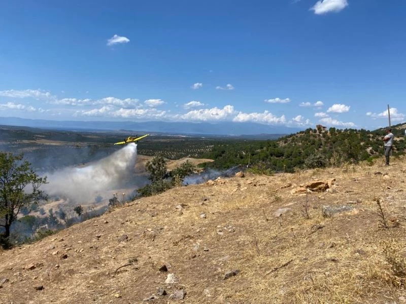 Balıkesir’in Ayvalık ilçesinde ormanlık alan sınırındaki tarım arazisinde çıkan yangın ekiplerin havadan ve yerden hızlı müdahalesi ile ormana sirayet etmeden kontrol altına alındı.