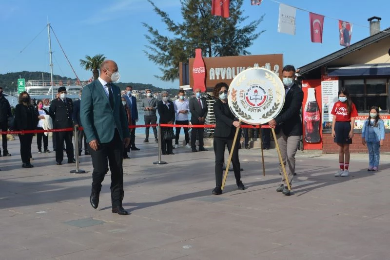 Ayvalık 15 Eylül Ortaokulu’nun koordinasyonunda gerçekleşen törende konuşan Ayvalık İlçe Milli Eğitim Müdürü Güner Bahadır, “Cumhuriyetimizin kuruluşunda ve milli egemenliğimizin tesis edilmesinde önemli bir görev üstlenen, Türkiye Büyük Millet Meclisi’nin kuruluşunun 101. yıldönümü ve 23 Nisan Ulusal Egemenlik ve Çocuk Bayramını kutlamanın büyük onur ve gururunu yaşıyoruz.” dedi.
