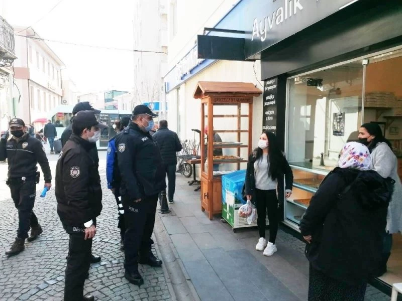 Ayvalık’ta sahil şeridi, Cumhuriyet Meydanı, ilçenin tek ana arteri Atatürk Caddesi ile merkez caddeler ve tüm sokaklarda ve işyerlerinde vatandaşların maske-mesafe-hijyen kurallarına harfiyen uyması için insanüstü çabalarla mesai harcayan polis ekipleri, bu özverili çalışmaları nedeniyle de halkın takdirini kazanıyor.