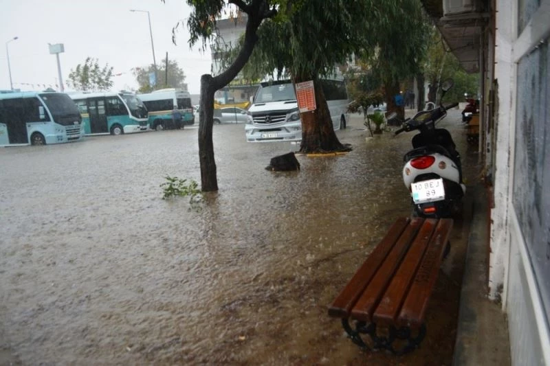 Ayvalık’ta şiddetli yağış ve lodos hayatı felç etti