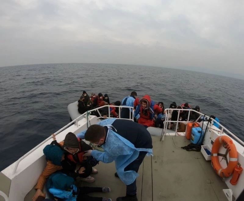Balıkesir’in Ayvalık ilçesinde, Yunanistan sahil güvenlik ekipleri tarafından Türk kara sularına itilen 44 mülteci kurtarıldı.