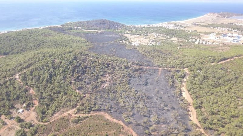 Ayvalık’ta yangında zarar gören bölge havadan görüntülendi