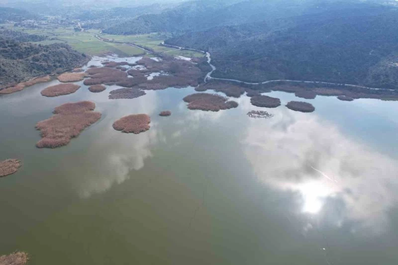 Aydın’ın Söke ilçesinde bulunan ve birçok kuş türünü ev sahipliği yapan Azap Gölü’nün doğal güzelliği havadan görüntülendi.
