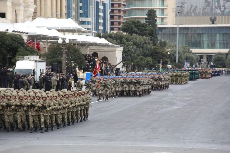 Azerbaycan’ın Ermenistan’a karşı Dağlık Karabağ’da yürüttüğü operasyonun 10 Kasım’da Azerbaycan’ın zaferi ile sonuçlanması Bakü’de kutlandı. Azerbaycan’ın gurur günü, Bakü’de bulunan Azadlık Meydanı’nda Cumhurbaşkanı Recep Tayyip Erdoğan ve Azerbaycan Cumhurbaşkanı İlham Aliyev’in yerini almasının ardından başladı. Erdoğan ve Aliyev, "Selam asker" diyerek askerleri selamladı. Azerbaycan Milli Marşı ve İstiklal Marşı’nın okunduğu törende önce Aliyev ardından da Erdoğan konuşma gerçekleştirdi. Türk Silahlı Kuvvetleri’nden (TSK) Bolu Komando Tugayı’nın da katıldığı törende, savaş uçakları havada duman izi ile Azerbaycan bayrağının renklerini çizdi. Helikopterlerden Türk ve Azerbaycan bayraklarının açıldığı törende Türk İHA ve SİHA’ların yanı sıra Azerbaycan’ın Ermenistan’dan ele geçirilen zırhlı araçlar sergilendi.