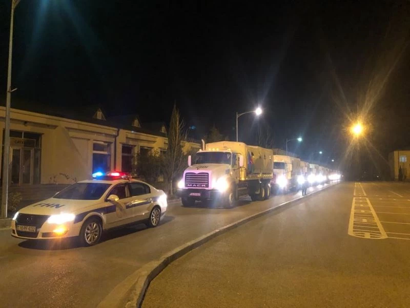 Azerbaycan Olağanüstü Haller Bakanlığının 13 araçlık konvoyu da yolda