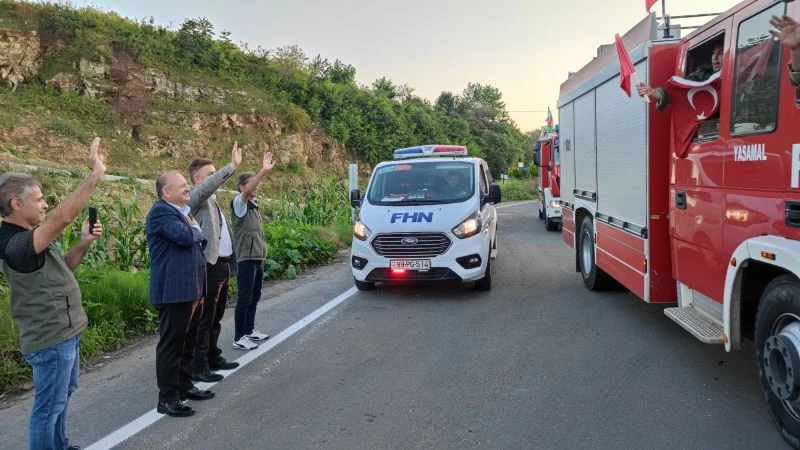 Ordu’nun Ünye Belediye Başkanı Hüseyin Tavlı, ülkedeki orman yangınlarının söndürülmesine destek olmak için gelen ve görevlerini tamamlayan kardeş ülke Azerbaycanlı itfaiyecileri, dönüş yolunda Ünye’de karşılayarak memleketlerine uğurladı.