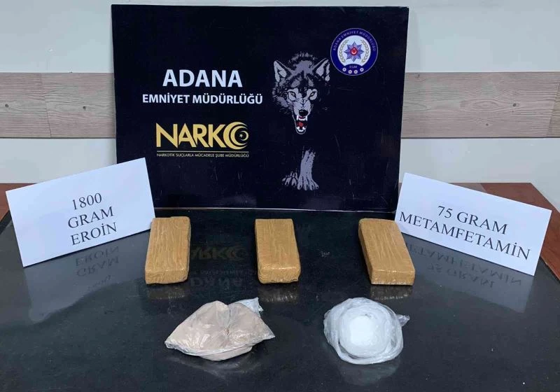 Adana’da evlerine yapılan baskında attıkları çorabın içinden 1 kilo 800 gram eroin ve 75 gram metamfetamin çıktığı öne sürülen baba-oğul tutuklandı.
