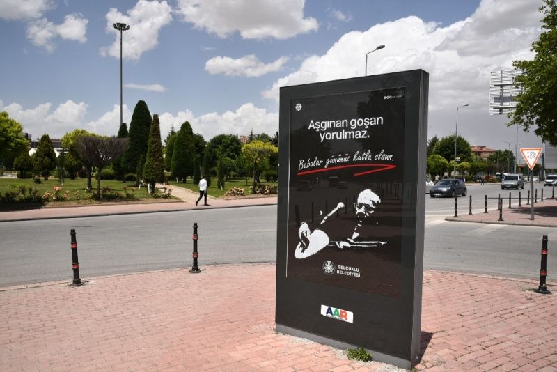 Her yıl Haziran ayı içinde kutlanan Babalar Gününe özel, merkez Selçuklu İlçe Belediyesi dikkat çeken bir çalışma hazırladı. İlçede reklam panolarında Türk müziğinde baba lakaplarıyla tanınan sanatçıların sözlerinden oluşan afişler yayınlandı. Arabesk dünyasında “Müslüm Baba” olarak bilinen Müslüm Gürses’in “Biz babadan böyle gördük”, Orhan Gencebay’ın “Sevenler kavuşunca yaşamak ne güzel” sözlerinin yanı sıra Neşet Ertaş’ın “Aşgınan goşan yorulmaz” sözlerine yer verildi. Şehrin farklı noktalarında yer alan afişler ilgi gördü.