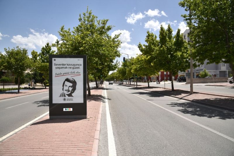 Konya’da, Babalar Günü için müzik dünyasının unutulmayan ‘baba’ lakaplı isimleri Müslüm Gürses, Orhan Gencebay ve Neşet Ertaş’ın sözlerinden oluşan mesajlar reklam panolarında yer aldı.