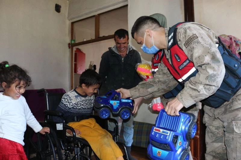 Babasının sırtında taşıdığı Batuhan’a jandarmadan anlamlı ziyaret
