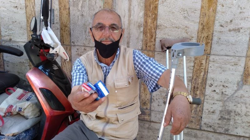 25 yıl önce sol bacağını kemik kanserine yakalanmasından dolayı kaybeden 70 yaşındaki Ramazan Yıldırımer, ailesini geçindirmek için 20 yıldır Eskişehir’de seyyar tartıcılık yapıp ve mendil satıyor. Günde kazandığı ortalama 50 TL ile geçim mücadelesi veren Yıldırımer, sol bacağı olmadığı için sigortalı işe giremediğini söyledi.