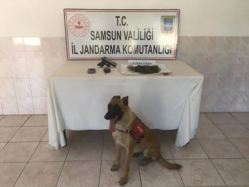 Samsun İl Jandarma Komutanlığı ve Bafra İlçe Jandarma Komutanlığına bağlı ekiplerce yürütülen istihbari çalışmalar sonucunda Ağıllar Mahallesi’nde sabah saatlerinde H.İ.A. isimli şahsın evinde narkotik dedektör köpeği ‘Ozon’ ile yapılan arama neticesinde 72 gram kubar esrar, 1 adet ruhsatsız tabanca, 1 adet elektronik hassas terazi ve önceden hırsızlığa konu olan bir adet cep telefonu ele geçirildi. Akşam saatlerinde yine Ağıllar Mahallesi’nde F.D. isimli şahsın evınde yapılan aramada da 26 gram kubar esrar maddesi ele geçirildi. Her iki şahıs da ifadelerinin alınmasının ardından serbest bırakıldı.