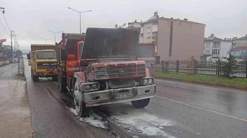 Yangın, Fevzi Çakmak Mahallesi Samsun-Sinop karayolunda meydana geldi. Edinilen bilgiye göre, Samsun istikametine seyir halinde olan 55 K 7843 plakalı kamyonun motor kısmından dumanlar yükselmeye başladı. Durumu fark eden sürücü aracı durdurarak 112’yi aradı. Olay yerine gelen Büyükşehir Belediyesi itfaiye ekipleri tarafından yangın söndürülürken, aracın motor kısmında maddi hasar oluştu. Yangının ise yağ borusundan çıktığı tespit edildi.