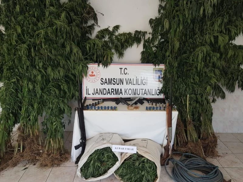 Samsun İl Jandarma Komutanlığına bağlı ekipler tarafından yapılan istihbari çalışmalar sonucunda Terzili ve Çamaltı Mahallelerinde yapılan operasyonlarda toplamda 401 kök kenevir bitkisi, 7 bin 260 gram kubar esrar, 1 adet ruhsatsız tabanca, 1 adet kurusıkı tabanca ele geçirildi.