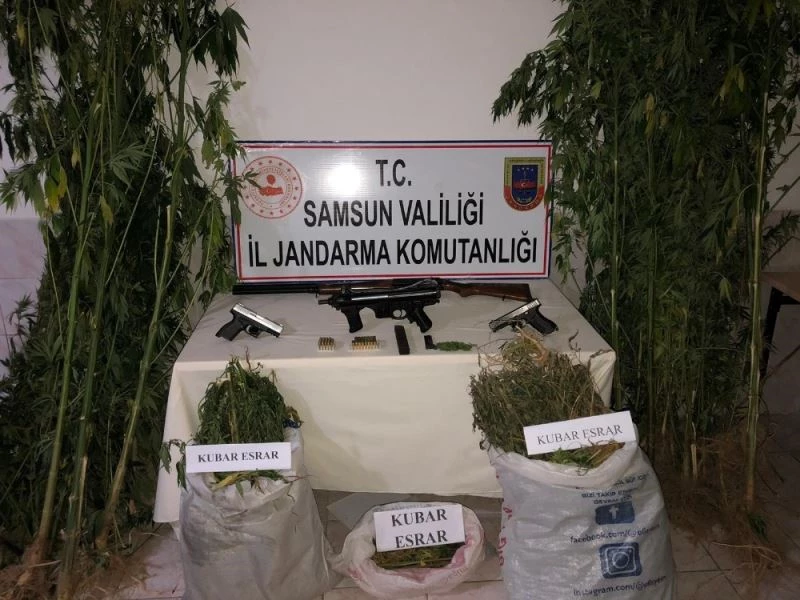 Samsun’un Bafra ilçesinde yapılan operasyonda 10 bin 180 gram kubar esrar, 135 kök kenevir, 1 adet makineli otomatik tabanca, 2 kuru sıkı tabanca ve 1 adet pompalı tüfek ele geçirildi.