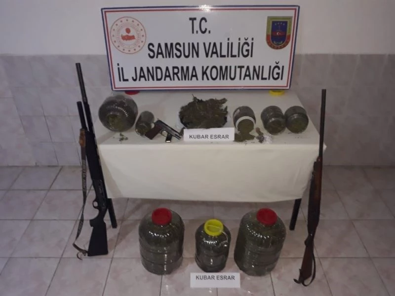 Samsun İl Jandarma Komutanlığı ve Bafra İlçe Jandarma Komutanlığı ekiplerince yapılan istihbari çalışmalar sonucunda, Lengerli Mahallesi ve ilçe merkezinde 2 ayrı adreste yapılan aramalarda 1 adet ruhsatsız, tabanca, 27 gram kubar esrar, 2 adet ruhsatsız av tüfeği, plastik bidon ve poşetlerde istiflenmiş 5 bin 690 gram kubar esrar maddesi ele geçirildi. Olayla ilgili M.K, A.D., R.K ve S.K isimli şahıslar gözaltına alındı. Gözaltına alınan şahıslardan M.K. cumhuriyet savcısının talimatıyla serbest bırakıldı.