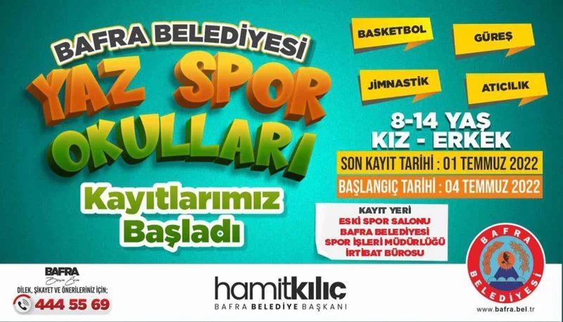 Bafra Belediye Başkanlığı tarafından basketbol, güreş, jimnastik ve atıcılık branşlarında açılacak yaz spor okullarına kayıtlar başladı.